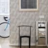 Quibist Taupe Wallpaper features a geometric 3D pattern with a textured finish shown here in a taupe colourway for a contemporary and modern look.